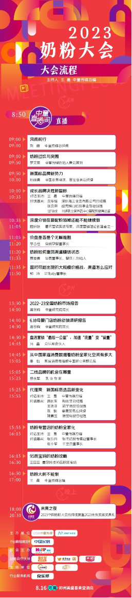 目前,最新大會(huì)流程已正式發(fā)布,這場聚焦奶粉羊奶熱點(diǎn)、把脈行業(yè)方向、形式多樣的專業(yè)論壇,精彩不容錯(cuò)過!