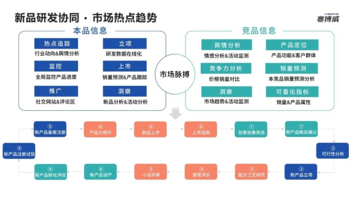 賽博威新品研發(fā)協(xié)同平臺目前已經(jīng)助力眾多頭部快消企業(yè)在新品研發(fā)過程中,洞察市場趨勢,找準新品方向,規(guī)范化新品研發(fā)流程,提高新品研發(fā)效率,實施新品上市追蹤,把握市場脈搏,搶占市場份額。