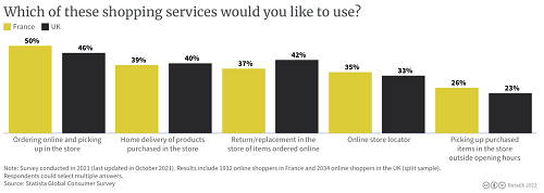 法國電商市場成熟,形態(tài)發(fā)展多樣,電商平臺和本地零售企業(yè)打得火熱,后者提供的“線上下單,線下自提”服務(wù)贏得了許多法國消費者的青睞。