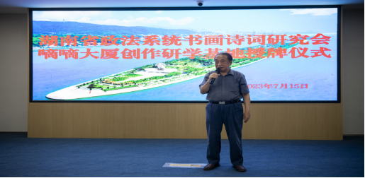 “全面建設(shè)社會主義現(xiàn)代化國家,必須堅持中國特色社會主義文化發(fā)展道路,增強文化自信。文化是民族之根。應(yīng)該讀好‘兩本書’,一本是有字的經(jīng)典之書,一本是無字的實踐之書。嘀嘀大廈緊鄰長沙火車站,來往交通方便,文化氣息濃厚,在長沙法官文聯(lián)學(xué)雷鋒書畫工作站的基礎(chǔ)上,進(jìn)一步成立政法文化創(chuàng)作研學(xué)基地,開展各種有意義的詩詞書畫文藝活動,可以助力實現(xiàn)‘以文興商、以商促文’的雙贏目的,為建設(shè)社會主義文化強國貢獻(xiàn)出我們應(yīng)有的心智和力量。這樣的政法文化創(chuàng)作研學(xué)基地多多益善?!迸韺ο矊顒咏o予高度肯定。