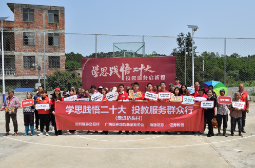 4月25日-26日,深交所聯(lián)合海通證券、廣西證券期貨基金業(yè)協(xié)會、證券時報舉辦的“學(xué)思踐悟二十大 投教服務(wù)啟新程”投資者服務(wù)專項(xiàng)活動走進(jìn)廣西欽州市浦北縣。在深入開展學(xué)習(xí)新時代中國特色社會主義思想主題教育之際,以多載體、多角度、多形式走進(jìn)鄉(xiāng)村小學(xué)、村間打谷場、田間地頭、紅色教育基地,以群眾喜聞樂見的方式展開面對面宣傳交流,推動投資者教育服務(wù)進(jìn)一步走進(jìn)鄉(xiāng)村基層,助力鄉(xiāng)村振興。