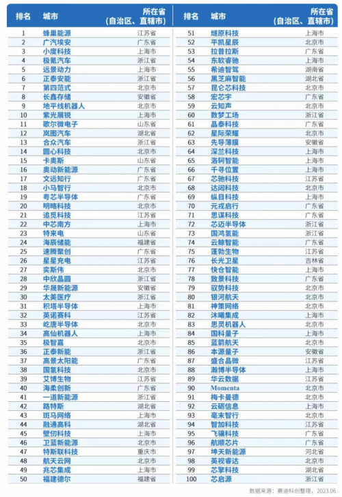 表1 賽迪科創(chuàng)獨角獸百強(2023)