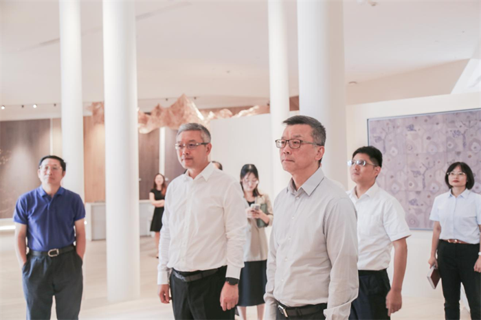 陳彥峰一行參觀書香門地集團(tuán)企業(yè)文化展廳、CNAS認(rèn)可實(shí)驗(yàn)室、美學(xué)生活館,了解書香門地集團(tuán)發(fā)展歷程、匠心制造、研發(fā)專利、品牌建設(shè)和質(zhì)量提升等相關(guān)情況,零距離接觸美學(xué)地板,感受“中國(guó)智造”與“美學(xué)設(shè)計(jì)”的獨(dú)特魅力。美學(xué)生活館藝術(shù)長(zhǎng)廊內(nèi),施華洛世奇水晶、彩貝、玉石、花草等元素美學(xué)地板得到來訪一行領(lǐng)導(dǎo)的高度評(píng)價(jià),稱贊書香門地美學(xué)地板顛覆人們對(duì)地板的傳統(tǒng)認(rèn)知,是新業(yè)態(tài)跨界融合的典范。
